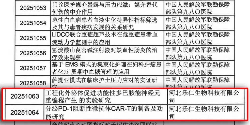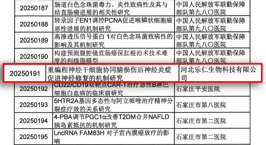 近期,由河北樂仁生物科技有限公司學術帶頭人楊志軍教授領銜的醫學科研團隊與河北生殖婦產醫院研究團隊深度合作,聚焦干細胞、外泌體、Car-T等醫學前沿技術, “工程化外泌體促進功能性多巴胺能神經元重編程產生的實驗研究、分泌 PD-1 阻斷性微抗體 CAR-T 的制備及功能研究、重編程神經干細胞協同腦損傷后神經炎癥促進神經修復的機制研究”成功獲批2024年河北省衛生健康委員會醫學科學研究計劃和石家莊市科技局科技支撐項目!