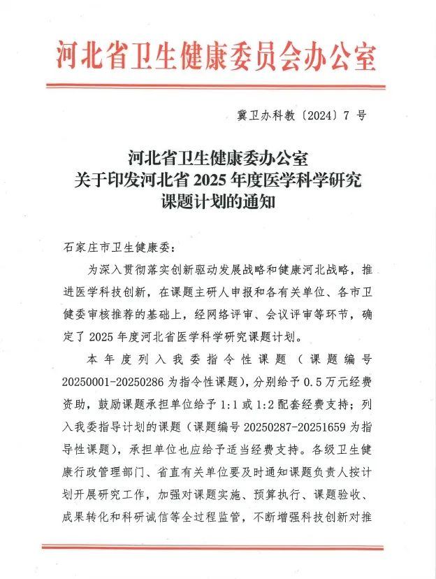 河北樂仁生物科技有限公司獲批3項河北省衛健委醫學科學研究計劃和1項石家莊市科技支撐項目課題
