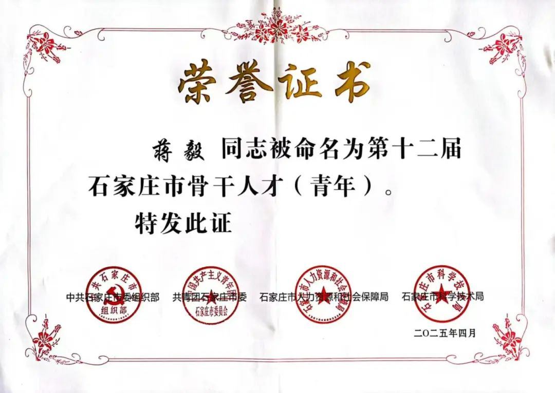 樂仁生物實驗室主任蔣毅被授予“第十二屆石家莊市骨干人才(青年)”榮譽稱號。此次評選是由石家莊市委組織部、共青團石家莊市委、石家莊市人社局、石家莊市科技局聯合主辦,旨在表彰為區域產業發展與技術創新作出突出貢獻的青年人才。