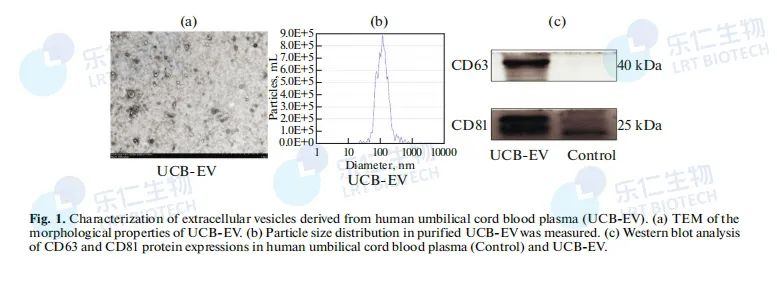 從臍血血漿里提取了 UCB-EV,帶著 CD63、CD81 等標志性蛋白。